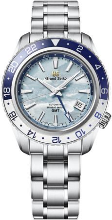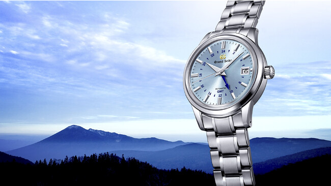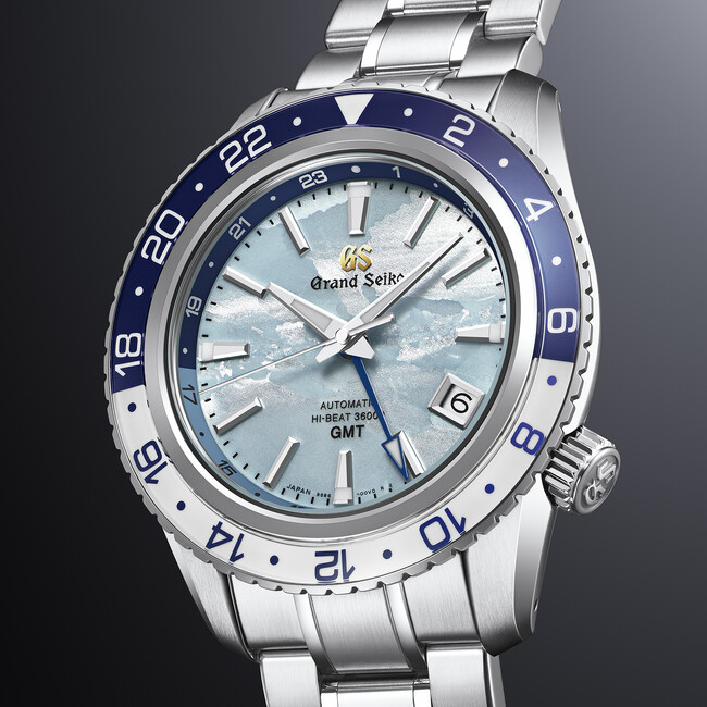 スポーツコレクションから発売する本作は、GMT機能のついたキャリバー9S86を搭載。グランドセイコーの機械式時計を生み出す製造地「グランドセイコースタジオ 雫石」から望む岩手山に広がる「雲海」と空の美しさを、ダイヤルと回転錘の爽やかなスカイブルーの色合いで表現しています。