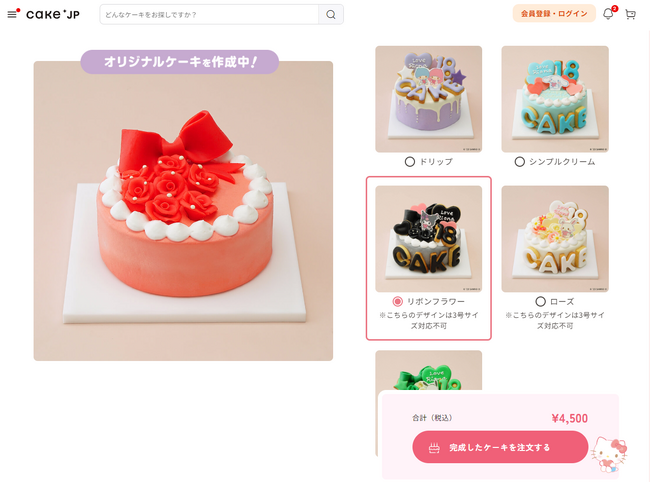 9種類の人気キャラクターをイメージしたプリセットデザインから選んだり、一から自分でデザインやサイズ、色、飾りをカスタマイズしたり、世界に一つだけのケーキがつくれます。推しのメンバーカラーにあわせて、楽しくカスタマイズできるのが魅力です。