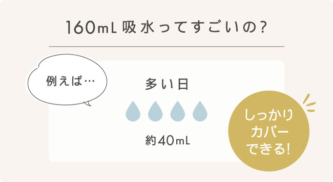 1. 独自のモレない構造で業界トップクラスの吸水量160ml*1を実現