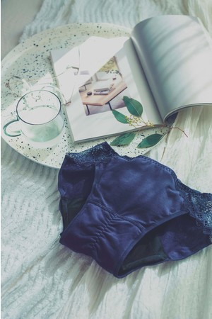背面や側面にレースを施し、あの日を少しでも前向きに過ごせるようなデザインに仕上げました。特にサニタリーショーツでは難しいといわれるデザインと吸水量の両立をした、フィット感も重視したデザインを叶えました。また、肌触りが良いオーガニックコットンを表生地に使用しています。