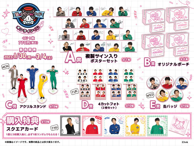 オンラインくじのための新規撮り下ろし素材を使用した、オリジナルグッズをラインナップ。