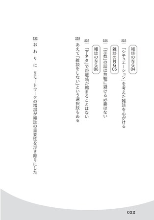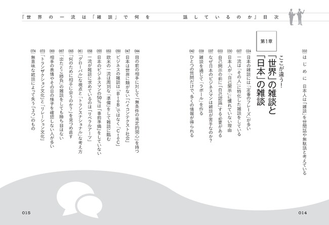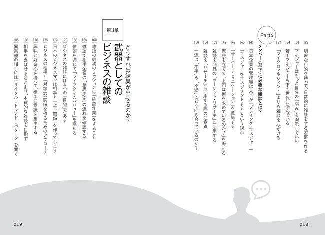 日本のビジネスマンは、上司の指示に従順であることを大事にしていますが、それで成果が出ないのであれば、お互いにとって不幸です。部下が上司に仕事を教えたり、場合によっては反論することも、これからの時代は大切になってくると思われます。本書を手に取った日本のビジネスマンが、雑談の新たな可能性を認識し、ぜひ明日からの仕事に役立てていただければ幸いです。