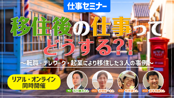 「移住後の仕事ってどうする?!〜転職・テレワーク・起業により移住した3人の事例〜」