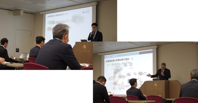 (▲左:東京開催 船井総研ロジ講演中の様子 右:東京開催 特別ゲスト講演中の様子)
