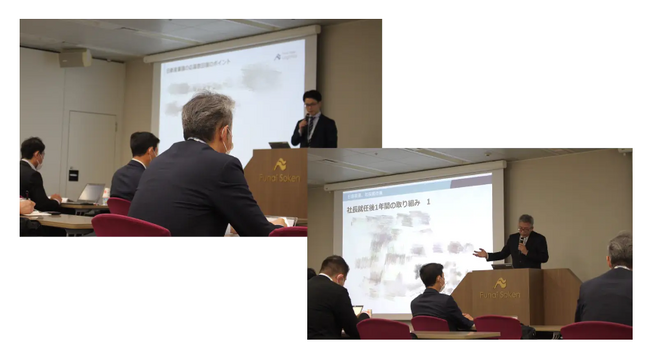 (▲左:東京開催 船井総研ロジ講演中の様子 右:東京開催 特別ゲスト講演中の様子)