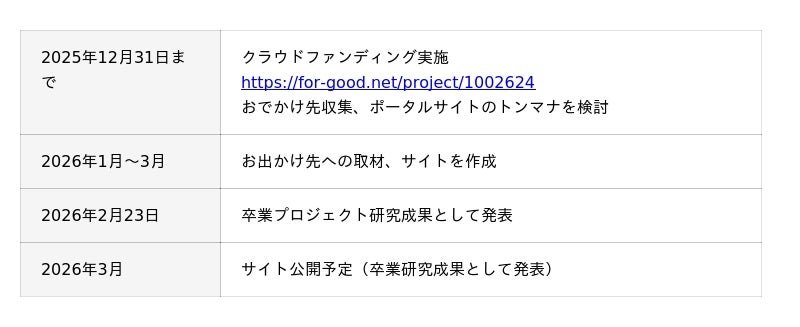 [表: https://prtimes.jp/data/corp/51586/table/505_1_fc614162d9e243cfdca195156654b78d.jpg?v=202511280317 ]日本初、不登校生のための「平日おでかけポータルサイト」を学生が開発 - 【公式サイト】広島県公立大学法人 叡啓大学