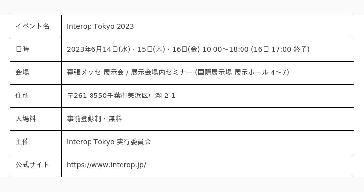 株式会社アスク ( 本社 : 東京都千代田区 ) は、 2023 年 6 月 14 日 ( 水 ) 〜 16 日 ( 金 ) に幕張メッセにて開催される『 Interop Tokyo 2023 』に出展します。パートナー企業であるネットギアジャパン合同会社の展示ブース ( 小間番号 : 6G21 ) にて『配信向けソリューション』『会議向けソリューション』の 2 つの展示コーナーを設け、それぞれのシチュエーションを再現したデモ展示を行います。