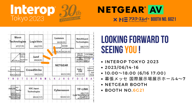 株式会社アスク ( 本社 : 東京都千代田区 ) は、 2023 年 6 月 14 日 ( 水 ) 〜 16 日 ( 金 ) に幕張メッセにて開催される『 Interop Tokyo 2023 』に出展します。パートナー企業であるネットギアジャパン合同会社の展示ブース ( 小間番号 : 6G21 ) にて『配信向けソリューション』『会議向けソリューション』の 2 コーナーを設け、 AV over IP の活用例をご提案、 NDI など IP 規格に対応した同社取り扱い製品の展示を行います。
