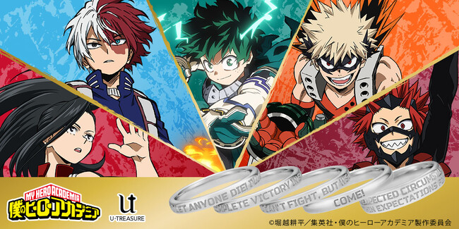 株式会社ユートレジャー(本社:東京都豊島区、代表取締役:伊藤 崇史)は、TVアニメ『僕のヒーローアカデミア』(原作:堀越耕平(集英社「週刊少年ジャンプ」連載中))とのコラボレーションアイテム「メッセージリング」10種類を2023年6月2日(金)〜7月3日(月)の期間限定で再予約の受け付けを行います。