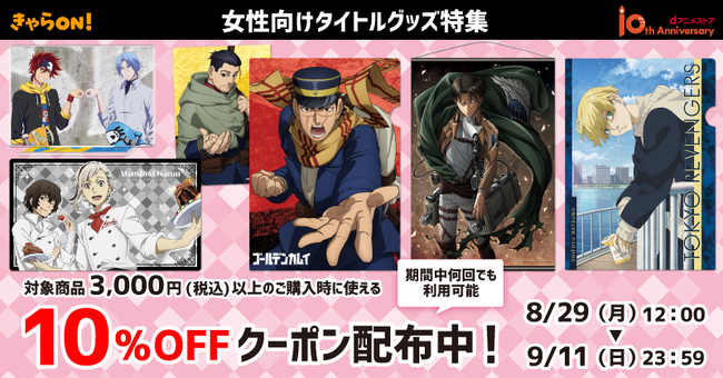 ▼【きゃらON!限定】女性向けタイトルグッズ対象10%OFFクーポン