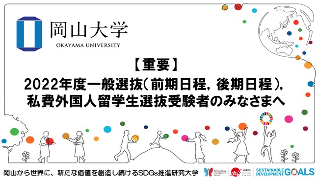 【岡山大学】【重要】2022年度一般選抜(前期日程, 後期日程), 私費外国人留学生選抜受験者のみなさまへ