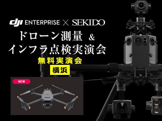 日本初のDJI正規販売代理店である株式会社セキド(本社:東京都港区、代表取締役:大下貴之)では、2023年1月26日(月)13時より神奈川県横浜市にて、最新の小型産業用ドローン「DJI MAVIC 3 ENTERPRISE(ディージェイアイ マビック 3 エンタープライズ)」や「DJI MATRICE 30 T(マトリス 30 ティー)」、産業用フラッグシップ・ドローン「DJI MATRICE 300 RTK(マトリス 300 アールティーケー、以下 M300 RTK)」と対応カメラモジュール「DJI Zenmuse(ゼンミューズ) L1/P1/H20T/H20N」を使った業務効率化がわかる、構造物点検と測量の実演会を開催いたします。