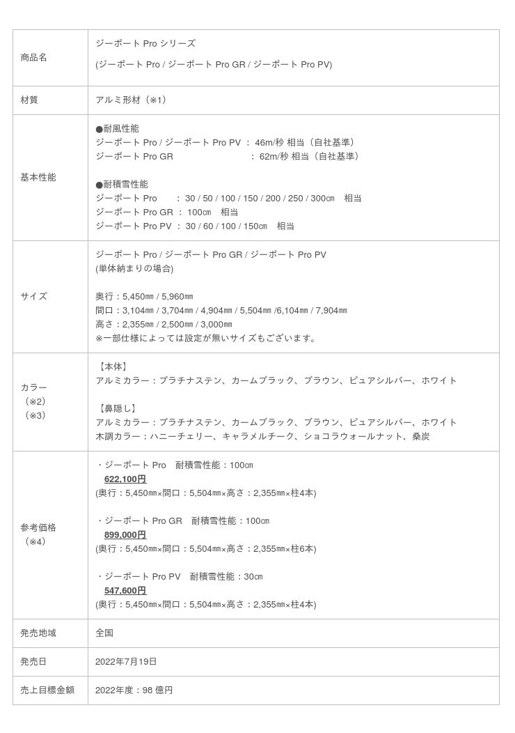強さと美しさを備えたハイグレード仕様のカーポート「ジーポート Pro」シリーズを発売
