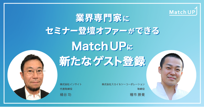 業界専門家にセミナー登壇オファーができる「Match UP」株式会社インサイト 桶谷 功氏、株式会社スカイ&シーコーポレーション 種市 勝覺氏が新たにゲスト登録