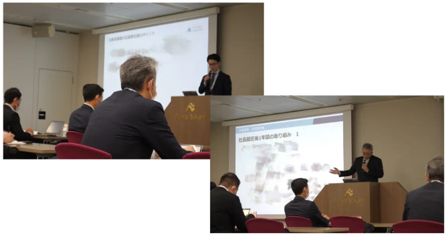 (講演中の様子 ▲左:船井総研ロジ 右:特別ゲスト)