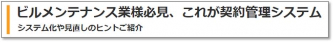 【ビルメンテナンス業様必見!】これが契約管理システム! 契約管理/収支管理・・システム化や見直しのヒントをご紹介〜 Excel運用からシステム化へのお客様が増えています!〜