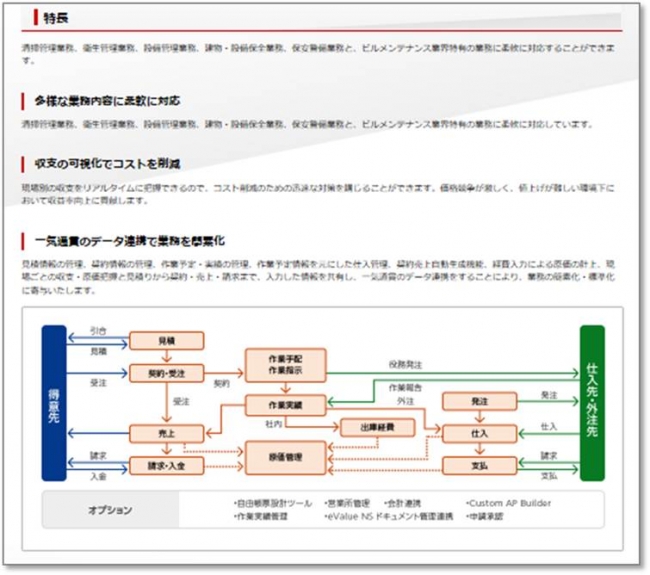 大塚商会のベストセラー基幹業務パッケージ「SMILE BS 2nd Edition 販売管理」とビルメンテナンス業向けテンプレート「B.M.Manager」、さらには「SMILE BS 2nd Edition 会計管理」「会計 プロジェクト原価管理オプション」を組み合わせ、ビルメンテナンス業の企業様の課題やリクエストに対するシステム化のヒントを紹介すると共に、タブレット活用による新たなビジネススタイルも合わせてご提案します。