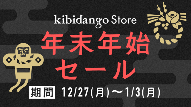 きびだんご株式会社(本社:東京都新宿区)は、2021年12月27日(月)〜2022年1月3日(月)23:59までの期間、同社運営の公式オンラインストア『Kibidango Store』(https://store.kibidango.com/)にて「年末年始特別セール」を開催中です。