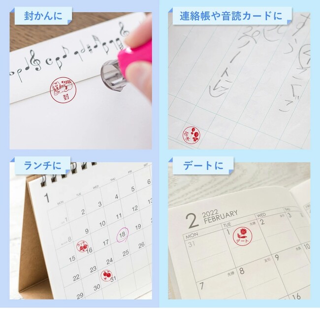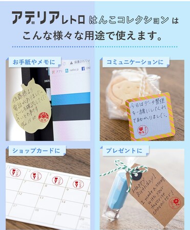 「アデリアレトロ デザインはんこ」は、お手紙やメモ、スケジュール帳や手帳など、日常のこんなさまざまな場面でもポンポン押して使えます。