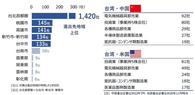 台湾に進出する日本企業は、2022年7月時点で3124社判明した。中国への進出企業(1万2706社※2022年7月調査)に比べると4分の1の規模にとどまるものの、多くの日本企業が台湾へ進出していた