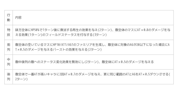 中列行動において新行動「押し込み」を持ち、味方を後列に送ることができるという他にはない独特な効果を発揮します。