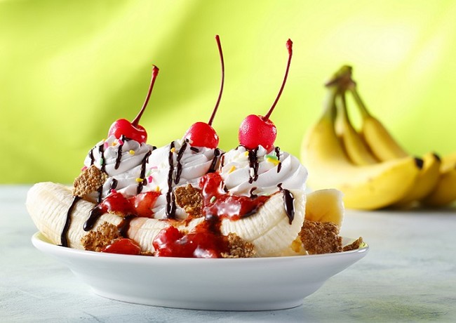 この度、キーワードをご入力いただいた事前予約でプレゼントとさせていただく「バナナスプリット」は、アメリカの伝統的なデザートをアレンジしたもので、縦半分にカットしたバナナの間にアイスクリームを挟み、たっぷりのホイップクリームを載せて、その上からチョコレートやベリーミックスをかけたボリューム満点で、思わず笑顔がこぼれる一品です。