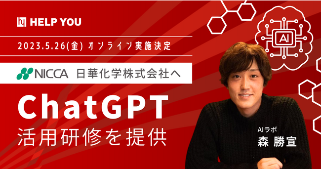 このたび令和5年5月26日(金)に、日華化学株式会社(本社:福井県福井市、代表取締役社長執行役員:江守 康昌 氏)の社員の方々に向けた、「ChatGPT活用研修」を実施することとなりました。2月にHELP YOU AIラボを立ち上げた弊社が、AI技術を用いた業務効率化のヒントをお伝えします。