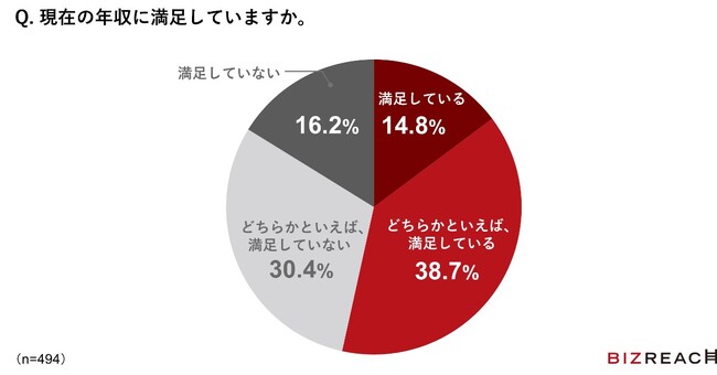 <年収750万円以上の即戦力人材に「年収」に関する調査を実施>46.6%が、現年収に満足していないと回答