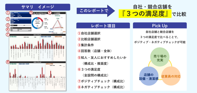 【個店比較レポート 2.全設問集計表】で競合他社との詳細比較