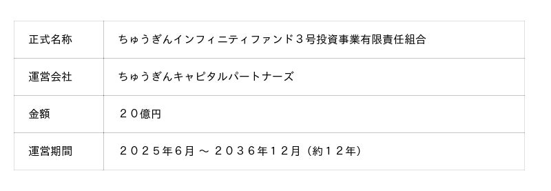 3号ファンドは、2020年9月に設立した「ちゅうぎんインフィニティファンド1号」(以下、「1号ファンド」)、2022年10月に設立した「ちゅうぎんインフィニティファンド2号」(以下、「2号ファンド」)の後継ファンドとなります。
