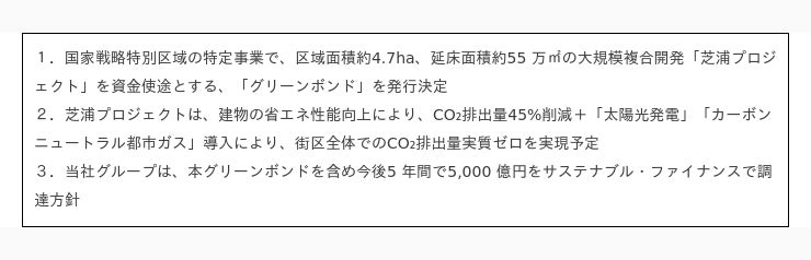 今後5年間で5,000億円をサステナブル・ファイナンスにて調達方針 「芝浦グリーンボンド」発行のお知らせ