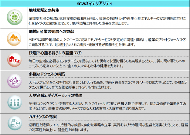 住友商事グループは『社会とともに持続的に成長するための6つのマテリアリティ(重要課題)』を、事業戦略の策定や個々のビジネスの意思決定プロセスにおける重要な要素と位置付け、事業活動を通じて課題を解決することで持続的な成長を図っていきます。本事業は、特に「地球環境との共生」および「地域と産業の発展への貢献」に資する事業です。
