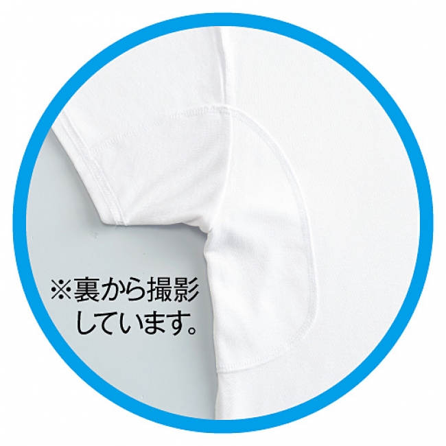 また、汗をかく前寄りの位置に取り付けた脇の汗取りパッドは、シミ出しを防ぐ防水シート入りの4層構造。汗の量が多くてもしっかり吸収します。