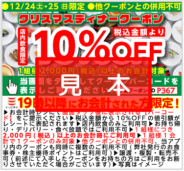 ※ 他のクーポンとの併用はできません。(弊社発行のお食事券・株主優待ポイントはご利用可)