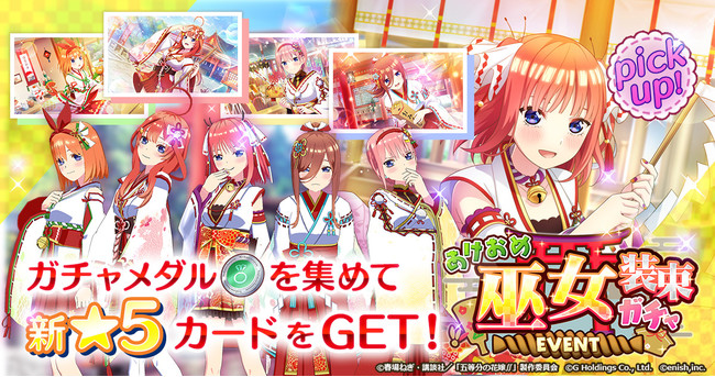 ・オリジナルの新春巫女衣装を着た五つ子が登場します。