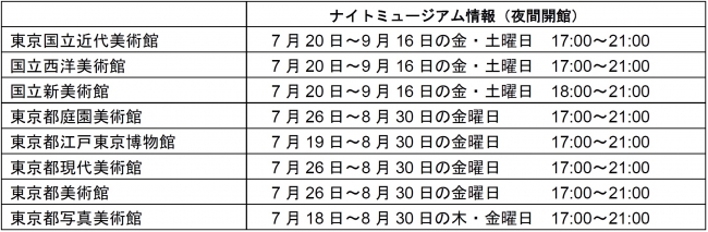 ※都立ミュージアムは、「サマーナイトミュージアム2019」(7月18日〜8月30日)として上記の曜日及び時