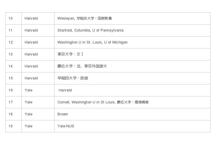 2017年度「ルートH」合格実績は、ハーバード大(4名)、エール大(2名)、プリンストン大(6名)、スタンフォード大(1名)、コロンビア大(3名)など。