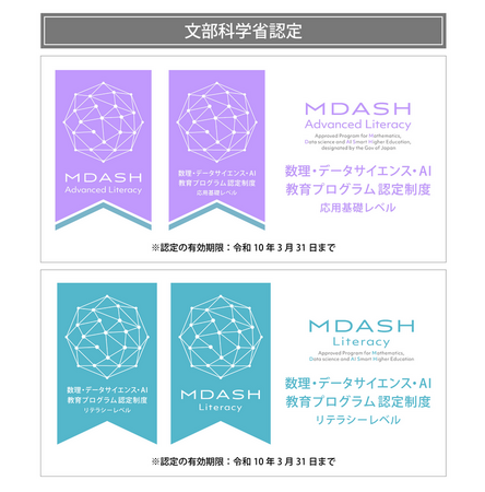本学では全学生に対して、数理・データサイエンス・AIに関する基礎的な能力および実践的な能力の向上を図り、認定機関としての役割を果たしていきます。