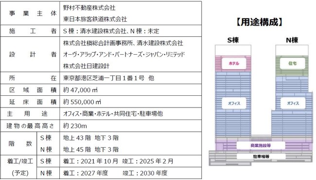 本プロジェクトは、浜松町ビルディング(東芝ビルディング:東京都港区芝浦1-1-1)の建替事業として、2021年10月に着工したS棟と、2027年度着工予定のN棟からなるツインタワーの建設を計画しております。(竣工予定時期:S棟2025年2月、全体2030年度)区域面積約4.7ha、延床面積約55万平方メートル の、オフィス・ホテル・商業施設・住宅等を含む、約10年間に及ぶ大規模複合再開発です。東京ベイエリアの新たなシンボルとして、国際ビジネス・観光拠点を創出します。本プロジェクトでは、街づくりを通じて、人も社会も、現在も未来も、継続して健やかで幸せであることを目指します。