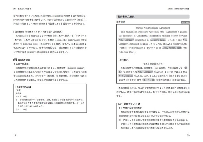 代表的な英文契約書ごとに、締結のポイント、重要キーワード、契約書の条文解説、バリエーション条項、契約書に共通する一般条項についての基礎知識を解説!