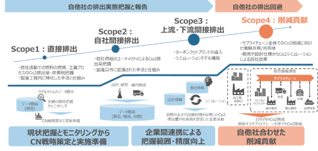 本サービスは、カーボンニュートラルの取組み状況に応じて、『製造GX』を用いた戦略立案から実行支援の一貫したサービスなど、個々のお客様に合わせたサービスを提供するものです。さらに、サプライチェーン全体のカーボンニュートラル達成に向け、複数のお客様や業界にまたがる相互連携も視野に入れてCO2排出量削減を進めることで、製造業におけるサステナブルな成長、およびカーボンニュートラル社会の実現に貢献します。