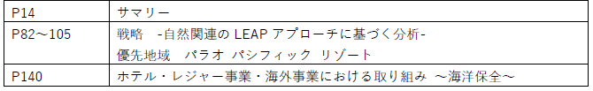 パラオ パシフィック リゾートを中心に、海洋に関するネイチャーポジティブへの貢献の取組みの追加および各種データ更新しています。