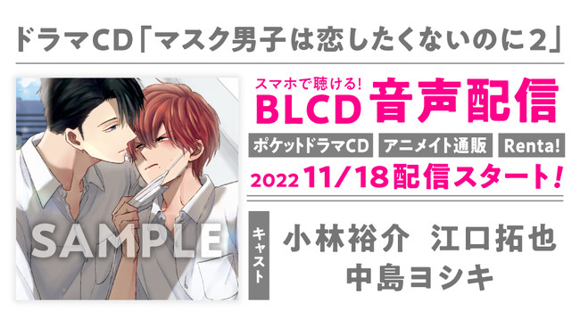 爆発的ヒット!リア充×マスク男子の青春系フェチBLのドラマCD「マスク男子は恋したくないのに」第2弾が2022年11月18日に発売決定!