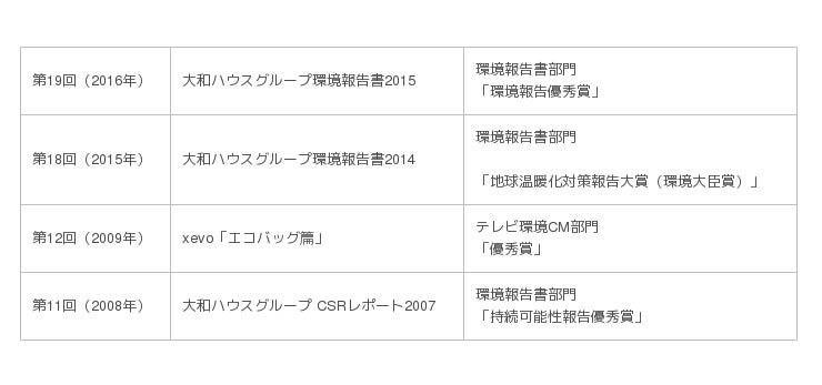 「大和ハウスグループ環境報告書2015」が「第19回環境コミュニケーション大賞」において「環境報告優秀賞」を受賞(ニュースレター)