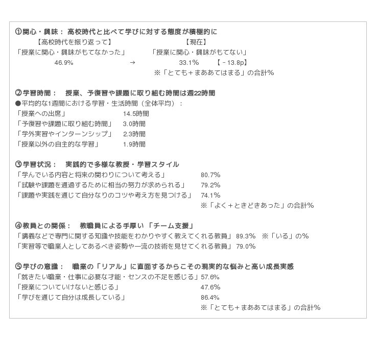 「専門学校生の学習と生活に関する実態調査」 職業のリアルを身近に感じることで 学びへの積極性が育つ