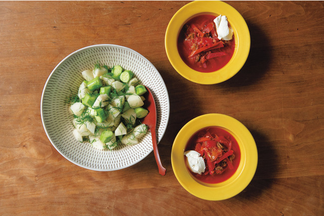 取材では、台所と器をお借りして、伊藤さん自ら料理を作り、盛り付けを手掛けることも。そして食器棚の主人と語り合うのは、器や食器棚を通じて見えてくる暮らしや人生のあれこれ。
