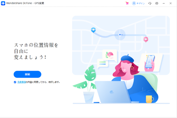 ・STEP1:「Dr.Fone - GPS変更」をダウンロードして起動します。