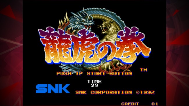 『龍虎の拳』 は、1992年にSNKから発売された格闘ゲームです。何者かによってさらわれたユリ・サカザキを助けるため、リョウ・サカザキとロバート・ガルシアの二人が様々な敵と戦います。気力ゲージを使用した本作ならではの駆け引きや、ダメージを受けたときの演出など、様々な面で意欲作として知られています。