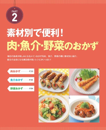 「メインは決めたけど、副菜や付け合わせは何を作ろう」と悩んでしまいがちな献立。組み合わせやバランスが難しいですが、本書では、全てのメインレシピに副菜や汁物の""献立ヒント""を付けているので、主菜を決めてしまえばその日の献立も同時に決めることができます。