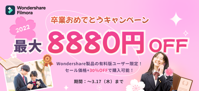 ・キャンペーンページ:https://filmora.wondershare.jp/graduation-2022.html
